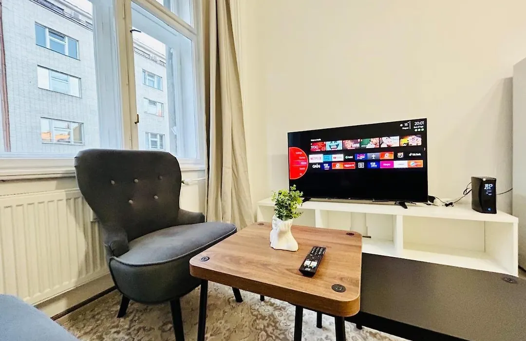 O New Apartment Near Wenceslas Square dispõe de área de estar e cozinha totalmente equipada e oferece vistas para a cidade. Um destaque do alojamento para os hóspedes é a presença de secador de cabelo, lençóis de banho e toalhas na casa de banho. Além disso, casa de banho separada e chuveiro estão disponíveis.